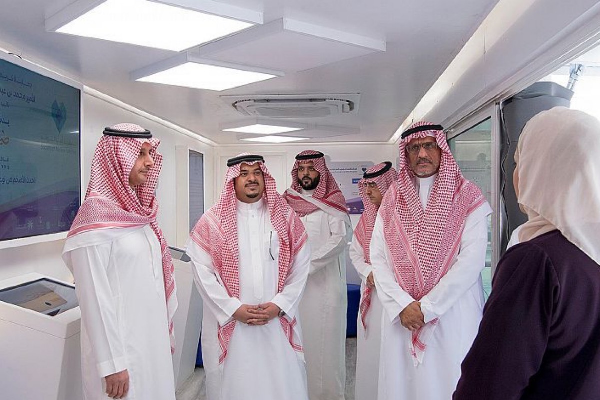 وقام الأمير بجولة داخل القافلة واطلع على الخدمات الإلكترونية المجهزة بها القافلة، وشاهد عرضًا مرئيًا يوضح الهدف من القافلة والخدمات المتعددة التي تقدمها لمساندة أسر ذوي اضطراب طيف التوحد، وتشمل التوعية والاكتشاف المبكر للاضطراب باستخدام وسائل تقنية متطورة.