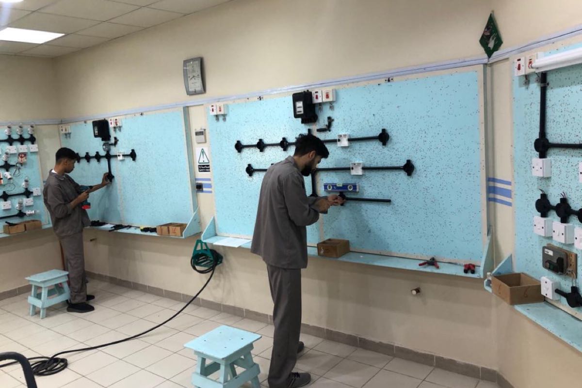 وتوزع الطلاب على خمسة برامج تدريبية موجهة للأشخاص ذوي الإعاقة، وهي الحاسب الآلي والكهرباء العامة والنجارة والتمديدات الصحية والزراعة.