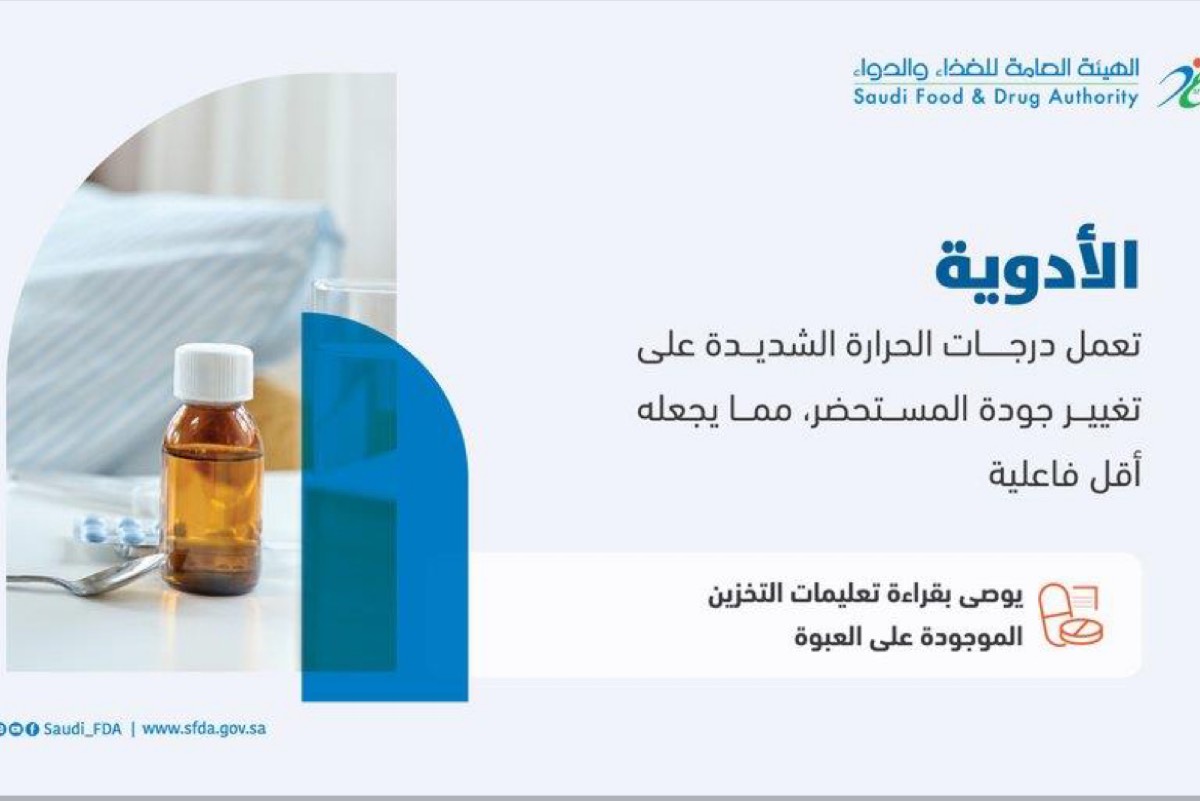 حذرت الهيئة العامة للغذاء والدواء جميع المستخدمين من آثار تخزين الأدوية والمستحضرات الطبية في درجات حرارة عالية.