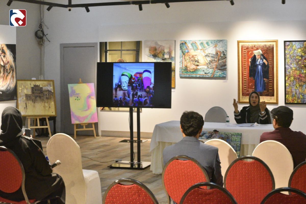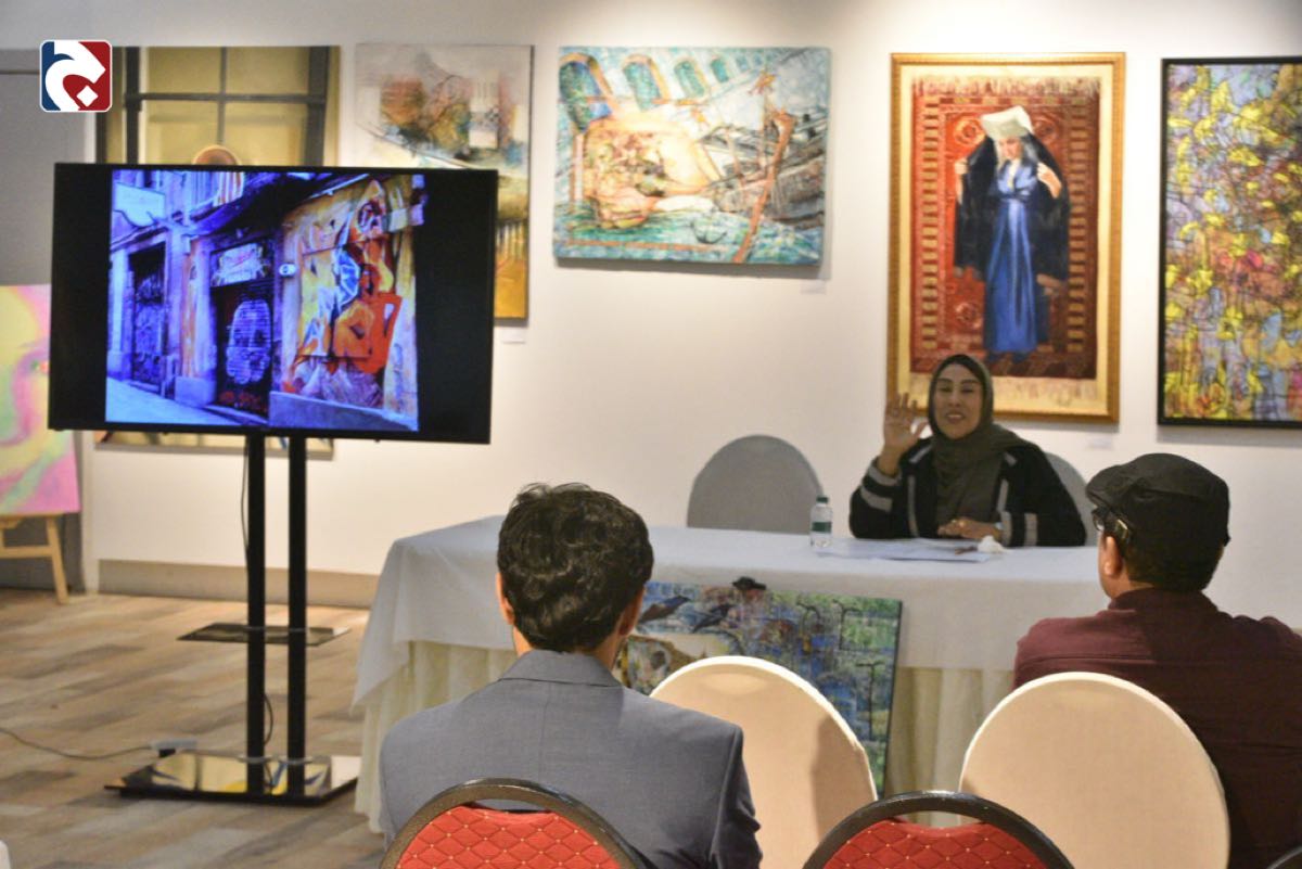 وفي اليوم الثاني من المعرض، قدمت التشكيلية حميدة السنان أمسية حوارية حملت عنوان ”رسوم التقنيات الحديثة“، شاركت فيها مجموعة من الفنانين والمهتمين بالفن.