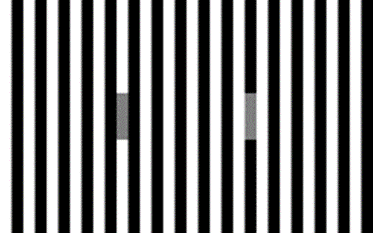 الشريطان الرماديان الموجودان في منتصف هذا الشكل هما اللون الرمادي نفسه، لكن الشريط على اليسار يبدو أغمق لأنه محاط بمزيد من الأشرطة السوداء»