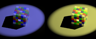 يحتوي كلا المكعبين على ما يبدو أنه مربعات صفراء وزرقاء على سطحيهما الغلويين. ومع ذلك، فإن تلك المربعات التي تبدو صفراء على اليسار هي في الواقع رماديية مطابقة للون المربعات الزرقاء على اليمين.