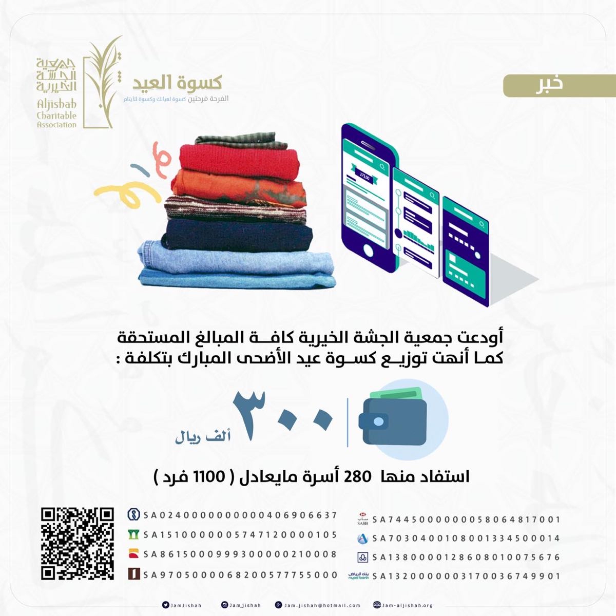 ب 300 ألف ريال.. 1100 مستفيد من «كسوة العيد» لـ «خيرية الجشة»