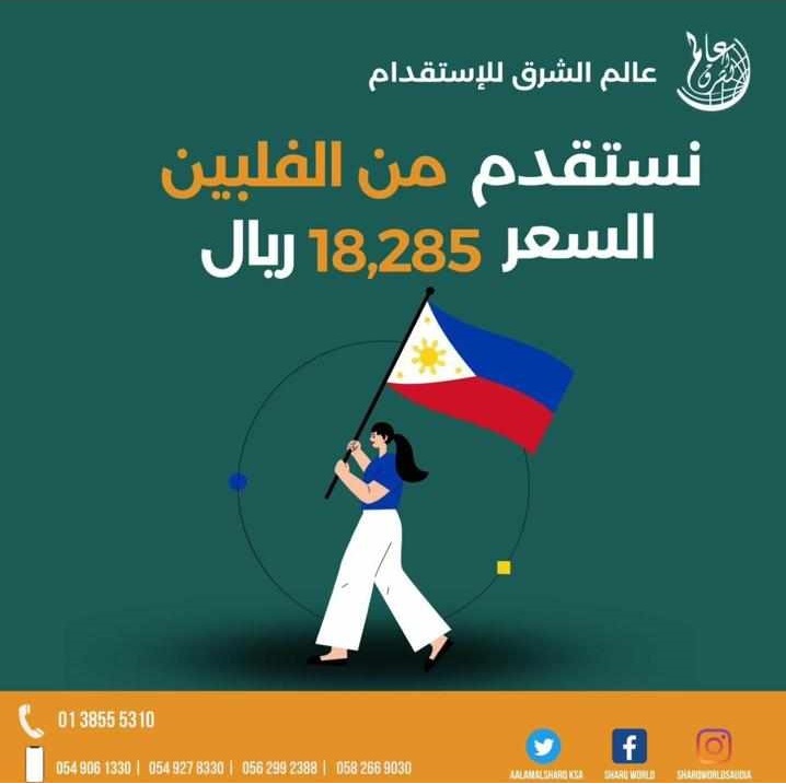 عالم الشرق للإستقدام مكتب استقدام سعودي يعمل في استقدام العمالة المنزلية والمهنية مرخص من قِبل وزارة الموارد البشرية والتنمية الاجتماعية