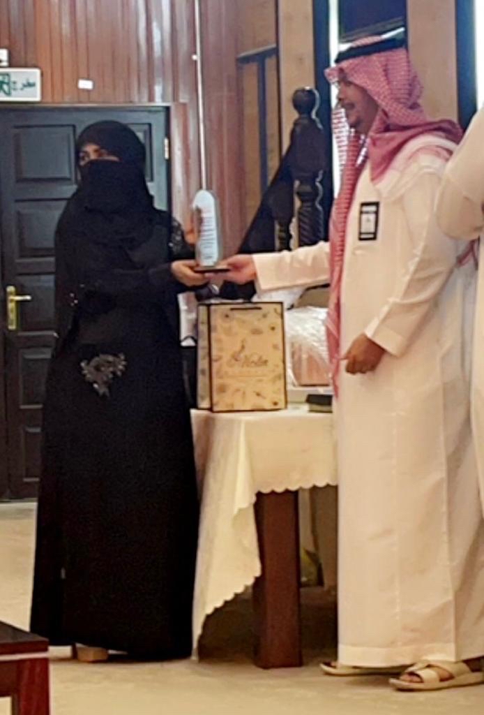 كما كرّم مريم المسلم؛ لحصولها على التميز في دبلوم مع مرتبة الشرف من جامعة الملك فيصل، ثم كرّم جميع منسوبي الإدارة.