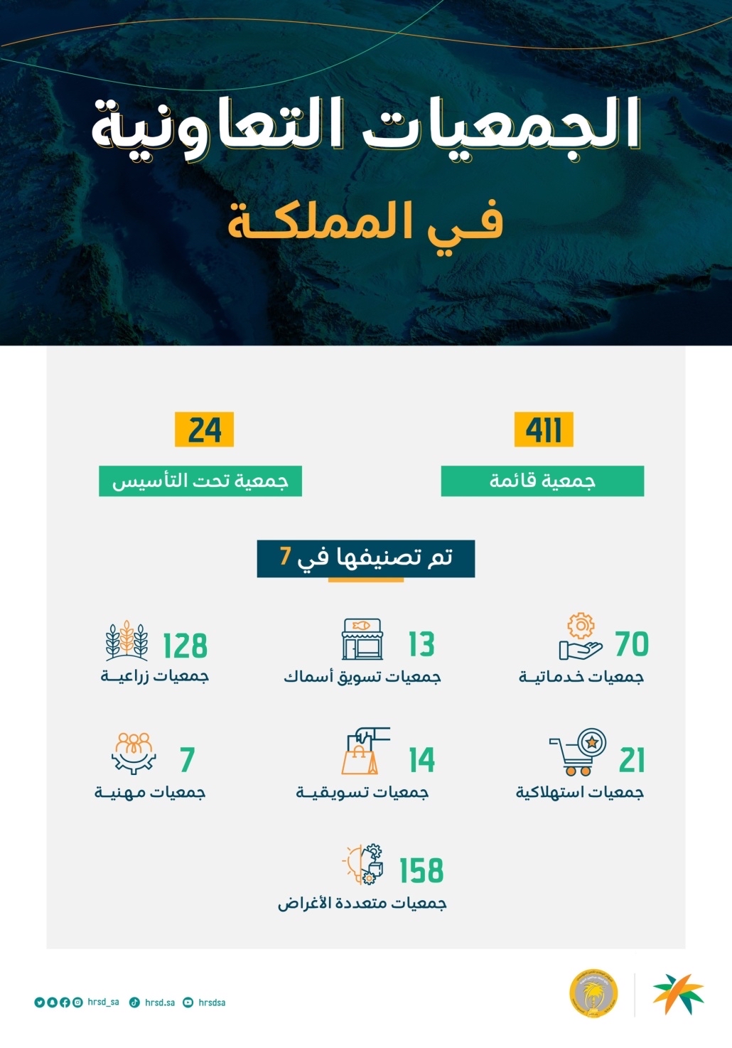 ارتفاع عدد الجمعيات التعاونية في المملكة إلى 411 جمعية