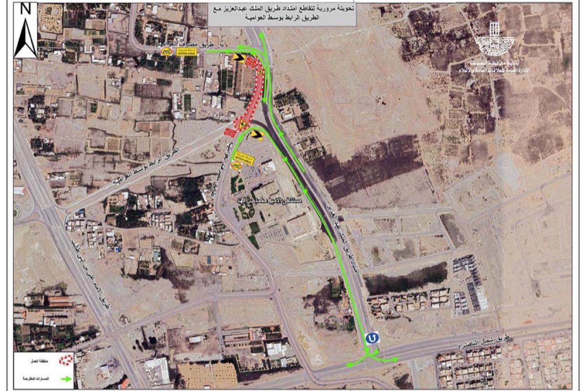 القطيف.. إغلاق جزئي لتقاطع طريق الملك عبدالعزيز مع وسط العوامية