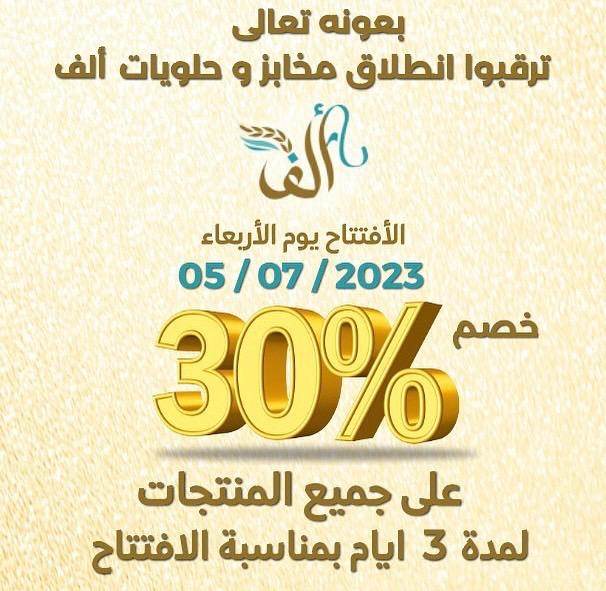 خصم 30% في سلسلة مخابز ألف الذهبية