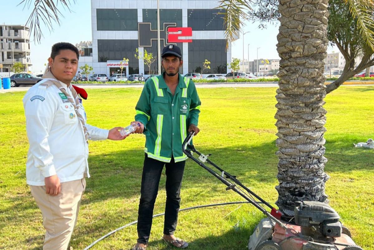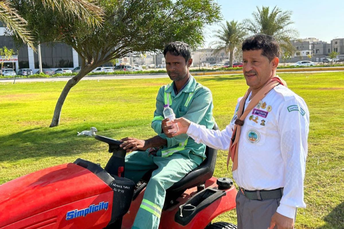شارك في هذه المبادرة أفراد فرقة كشافة رسل السلام، مستهدفة العمال بمحافظة القطيف في مواقع الإنشاءات والنظافة بالشوارع والمشروعات المكشوفة، خلال توزيع المشروبات الباردة عليهم.