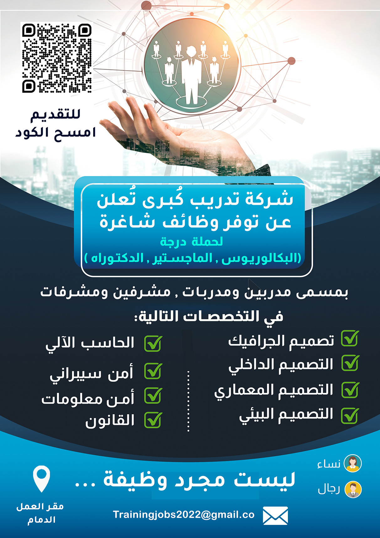 شركة تدريب كُبرى بالدمام تُعلن عن توفر وظائف شاغرة للمتميزين والمتميزات بمسمى «مدربين ومدربات، مشرفين ومشرفات»