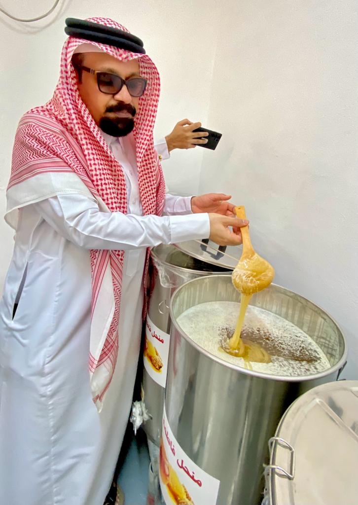 واطلع م. الأصمخ، خلال زيارته للمنحل، على المعرض الإرشادي المجهز لاستقبال المهتمين والطلاب ورياض الأطفال، الذي من خلاله يتم التعريف بأدوات النحل، مقدمًا الشكر للنحالة فاطمة الميلاد، على ما قدمته من شرح مختصر حول عمليه استخلاص وفرز العسل، وتخصيصها معرضا توعويا ضمن مشروعها، ودعا المهتمين بالعسل والنحل إلى خوض هذه التجربة ”عسل المانجروف“ والتي لها عائد اقتصادي جيد.