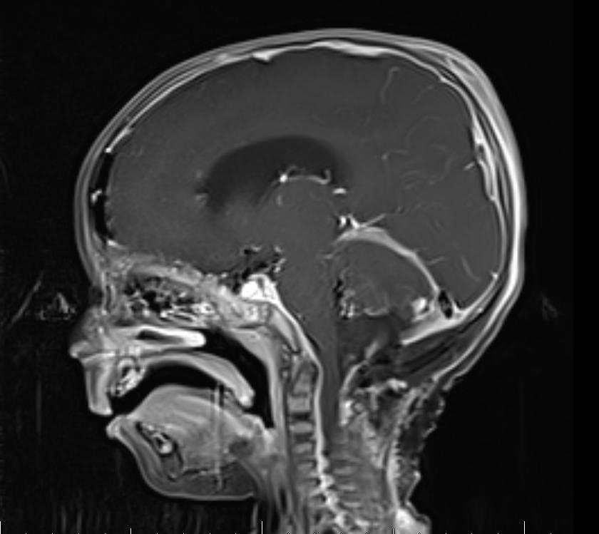 وأكد إجراء أشعة الرنين المغناطيسي لمنطقة الرأس مرة أخرى للتأكد من خلوه من أي بقايا لكتل ورمية، وبينت الأشعة سلامة المنطقة.