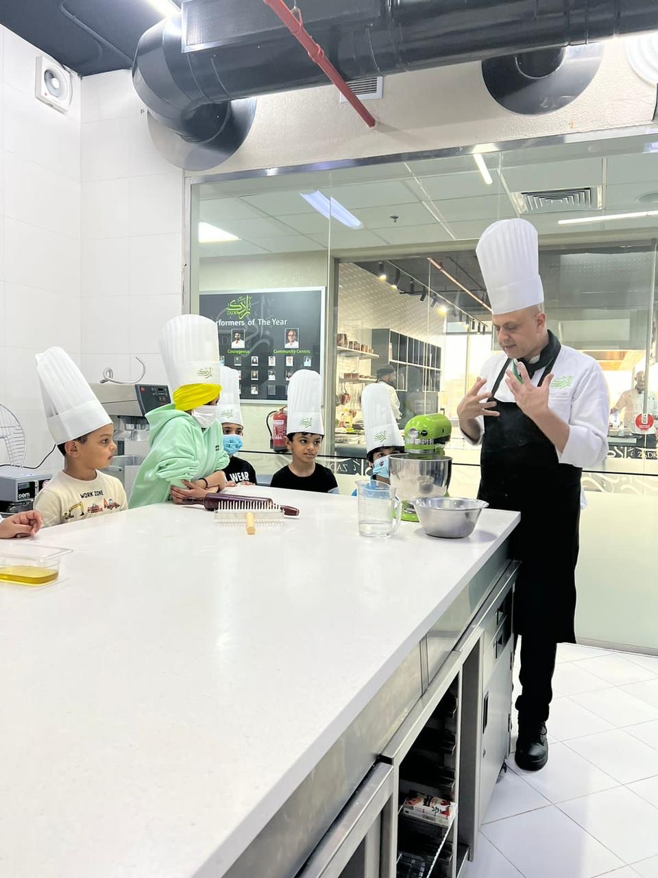 والتقى الأطفال عددًا من مدربي الأكاديمية للتعرف على فنون الطهي المختلفة، وكيفية إعداد الأطعمة، واستمتعوا بإعداد وتحضير أطباق منوعة مع طهاة الأكاديمية في أجواء ممتعة.