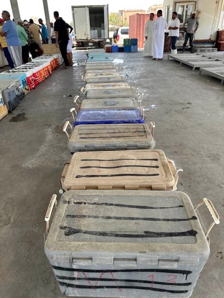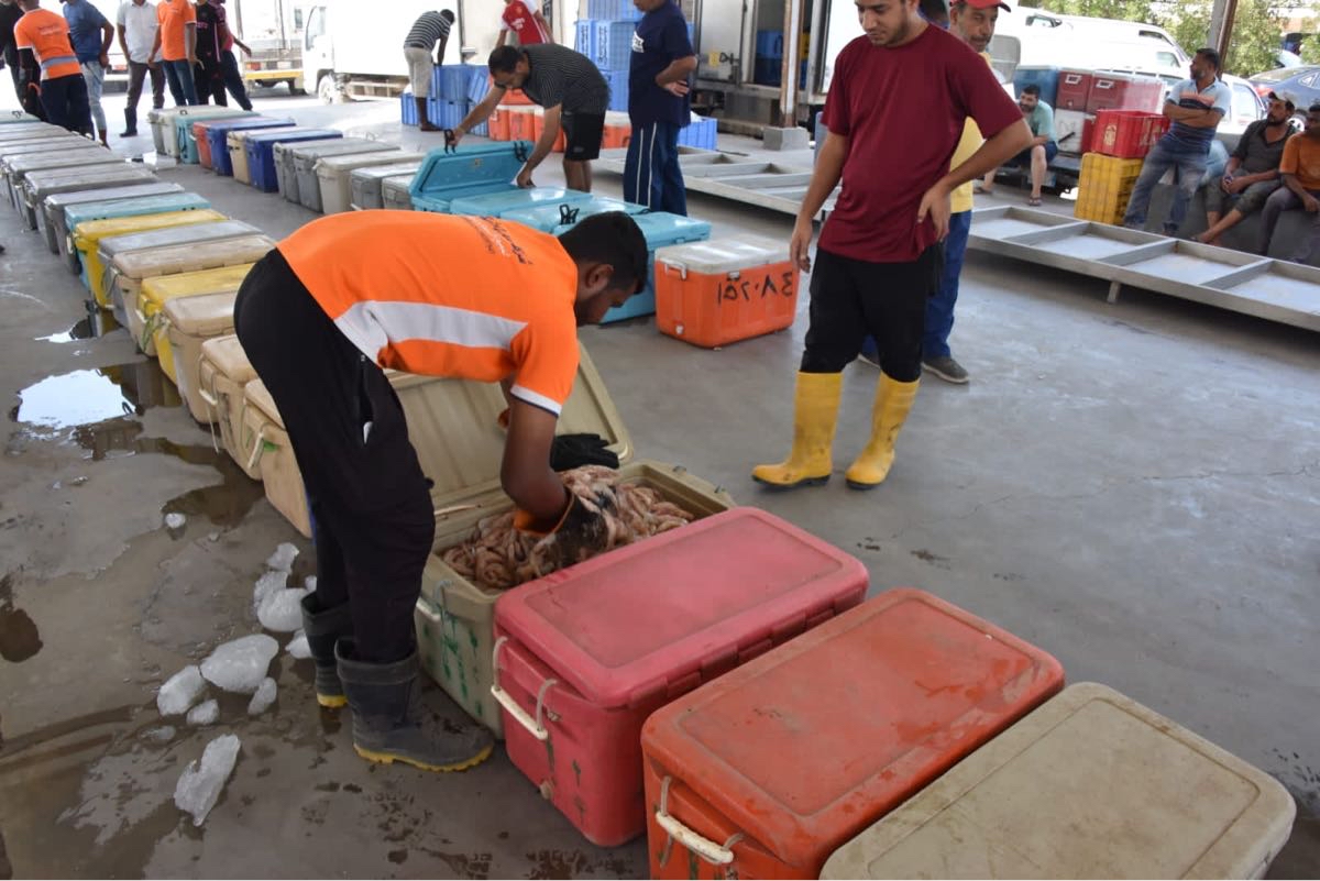 ووصل إجمالي الكميات التي وصلت في اليوم الأولى إلى إلى 300 ثلاجة، بما يعادل ألف كيلو جرام ”طن“، جاء من صيد المراكب الصغيرة ”الطرادات“.