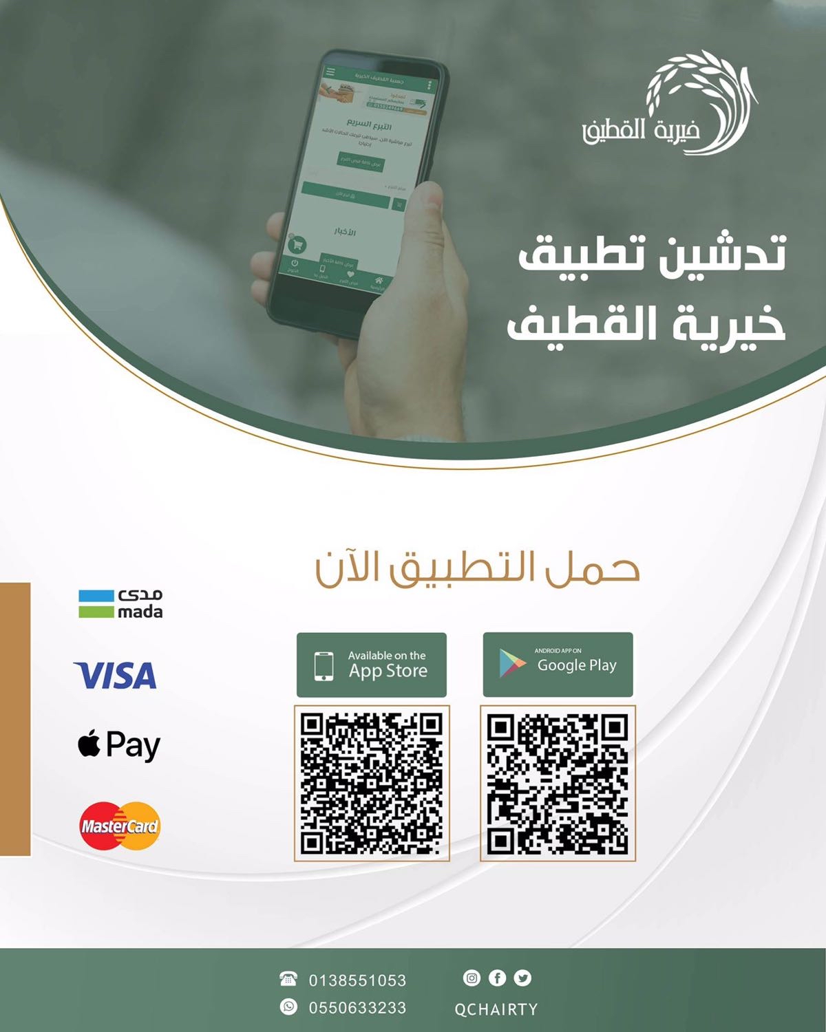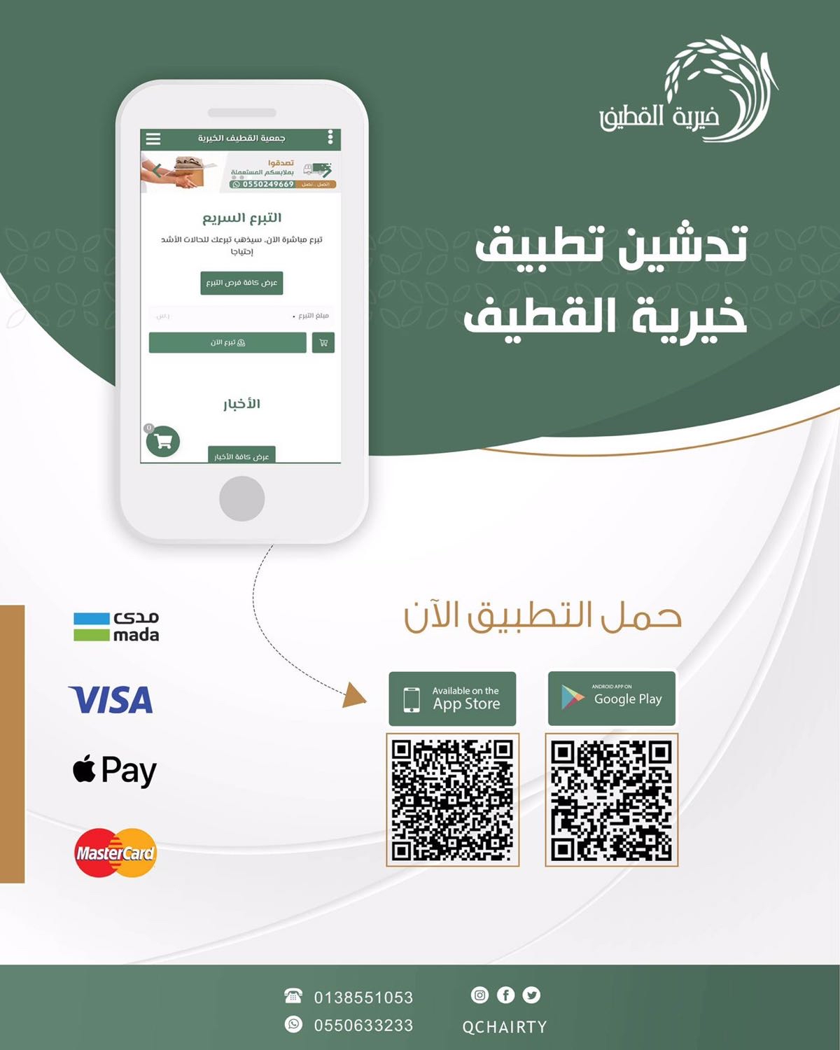 أطلقت جمعية القطيف الخيرية تطبيقها للتبرع الالكتروني وتقديم خدماتها للمجتمع بكل يسر وسهولة عبر متجر ”App Store“ ومتجر ”Android“ وذلك تعزيزا للتحول الرقمي وتحقيقا لمستهدفات رؤية 2030.
