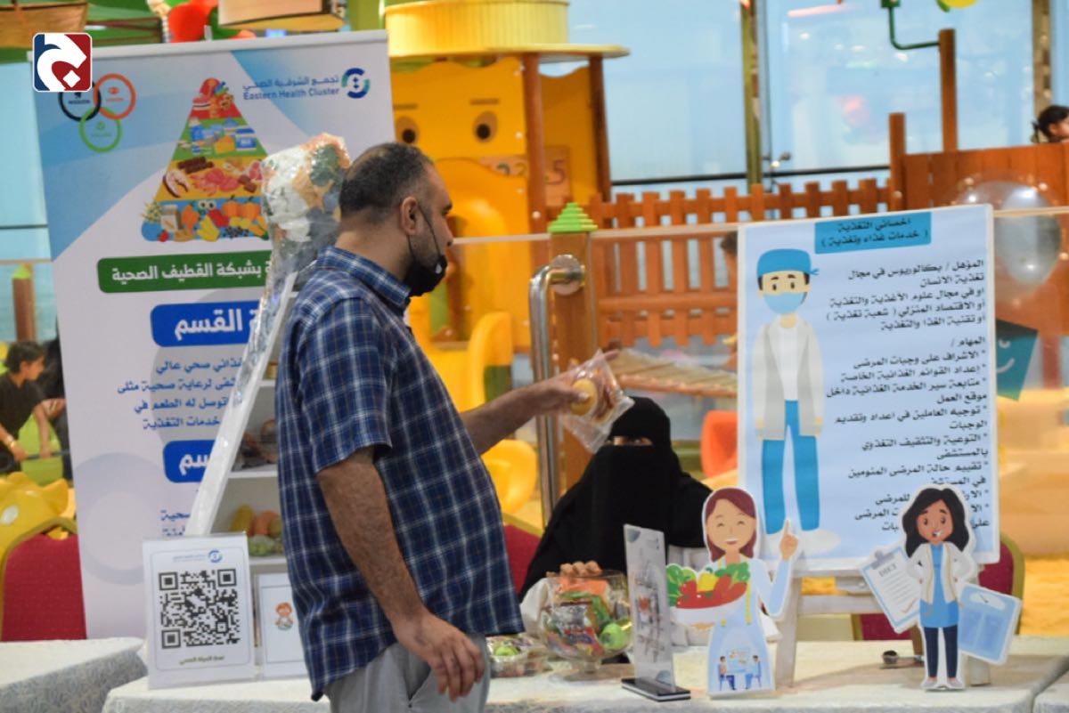 وفي ركن التغذية، ذكرت أخصائية التغذية من مستشفى القطيف المركزي ”زينب الحليمي“، أن الركن استهدف التعريف بالتغذية السليمة، بدءًا من الرضاعة الطبيعية، وصولًأ إلى الطبق الصحي.