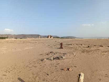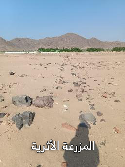 على بعد ”112 م“ تقريبا، وبالقرب من هذا الحجر مزرعة أثرية محاطة بالأحجار، وهذا تنطبق عليه النصوص التالية: