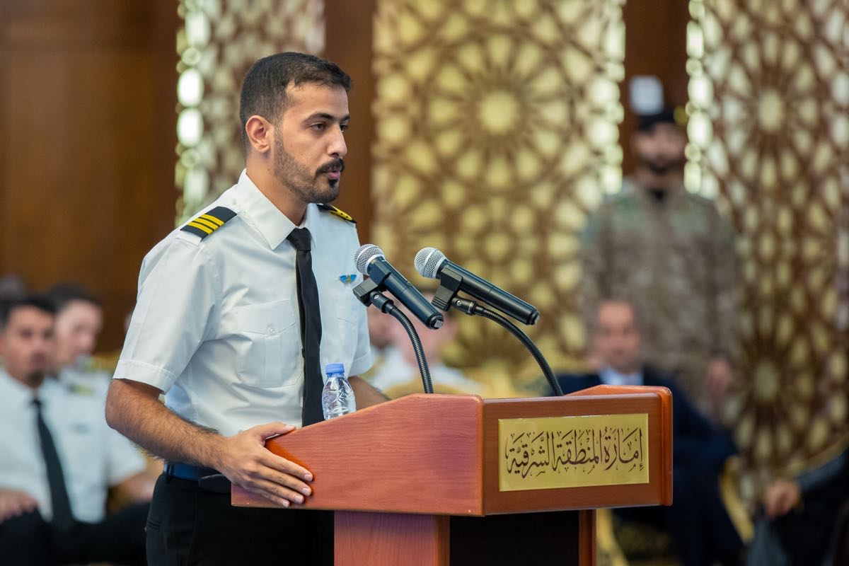 وألقى الطيار عبدالعزيز المحيميد كلمة الخريجين، وعبر فيها عن فرحة الخريجين في يوم تخرجهم، الذي أتى كتتويج لسنوات من الجد والاجتهاد والكفاح والعمل الدؤوب في طلب العلم والمعرفة لاسيما في علوم الطيران، متطلعين لخدمة الدين والمليك والوطن، والعبور نحو مستقبل مشرق مزدهر في علوم الطيران، لتحقيق تطلعات رؤية المملكة 2030 في قطاع الطيران.