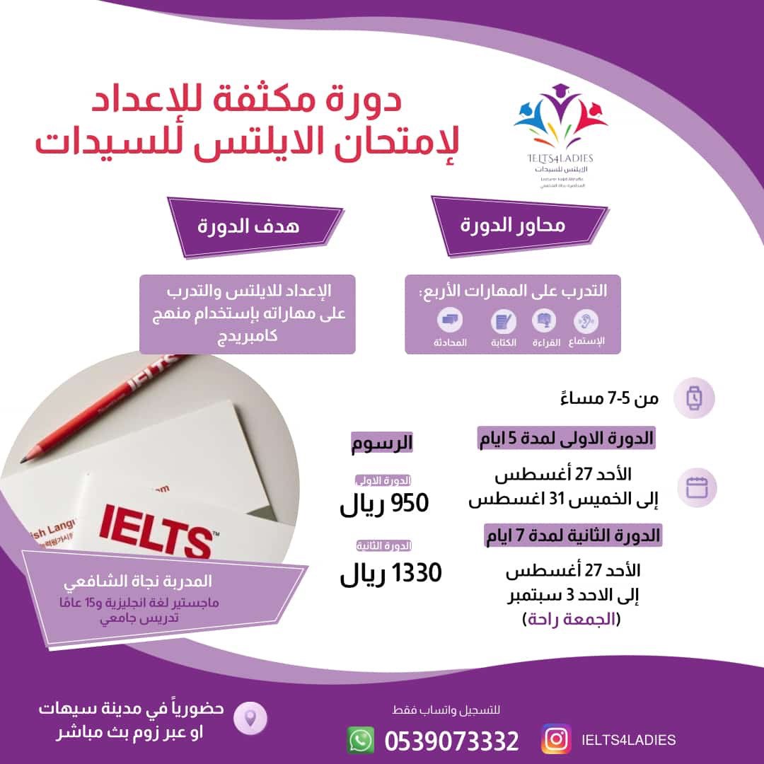 ✨دورة مكثفة للإعداد لإمتحان الايلتس للسيدات✨