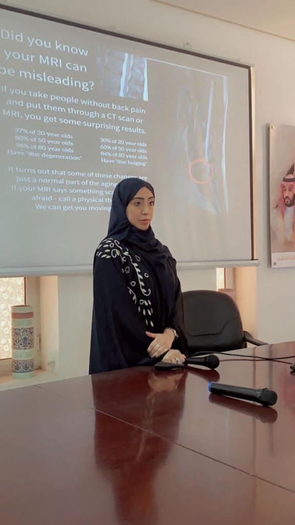 في ختام المحاضرة، قامت سمية العبدالوهاب، مساعدة المدير في المكتب، بتكريم هبة الحبيب، تقديرًا لجهودها ومساهمتها في تقديم المعلومات والنصائح القيمة التي ستعود بالفائدة على الأشخاص الذين يعانون من مشاكل وآلام الظهر، وتوفير وسائل الوقاية المناسبة لهم.