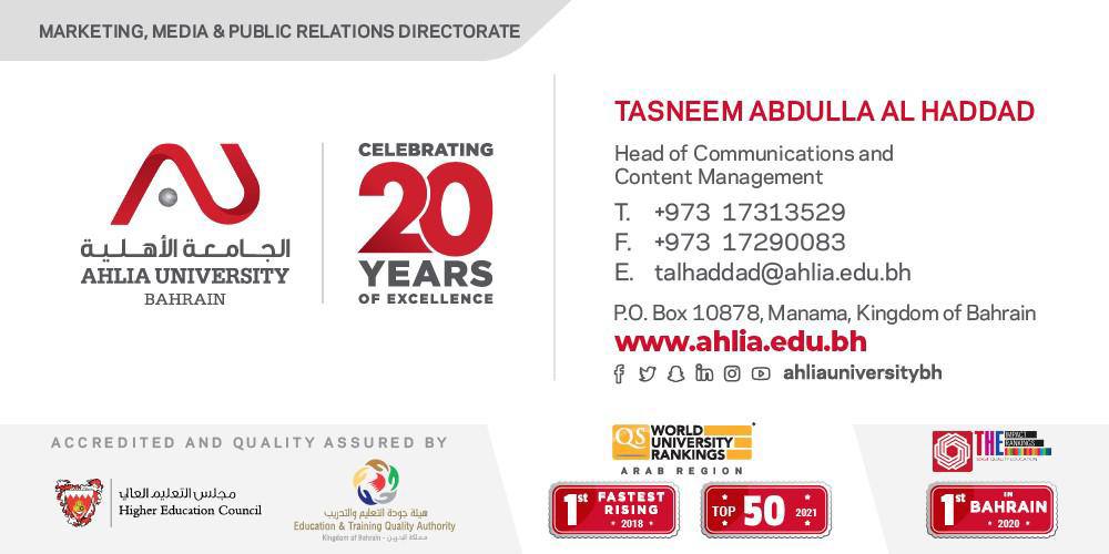 إن الجامعة الأهلية هي أول جامعة خاصة في مملكة البحرين، وهي باكورة المشروع الإصلاحي الكبير لحضرة صاحب الجلالة ملك مملكة البحرين المعظم الذي بارك تأسيس الجامعات الخاصة منذ العام 2001، والمعروف أن الجامعة الأهلية هي أول جامعة محلية تحصل على التصنيف الدولي، حيث تم تصنيفها من أحد أهم مؤسسات التصنيف الأكاديمي العالمية“QS”كأسرع جامعة نموًا من بين الجامعات العربية، كما أنها احتلت المرتبة 15 عالميًا في ”جودة التعليم“ بحسب تصنيف ”التايمز“ العالمي «Times Higher Education» تماشيًا مع أهداف الأمم المتحدة للتنمية المستدامة، علاوة على أنها تتميز بشراكاتها الأكاديمية طويلة الأمد مع جامعات مرموقة مثل جامعة جورج واشنطن الأمريكية، وجامعة برونيل البريطانية، وغيرها من الجامعات العالمية ذائعة الصيت.