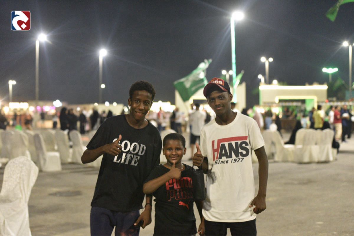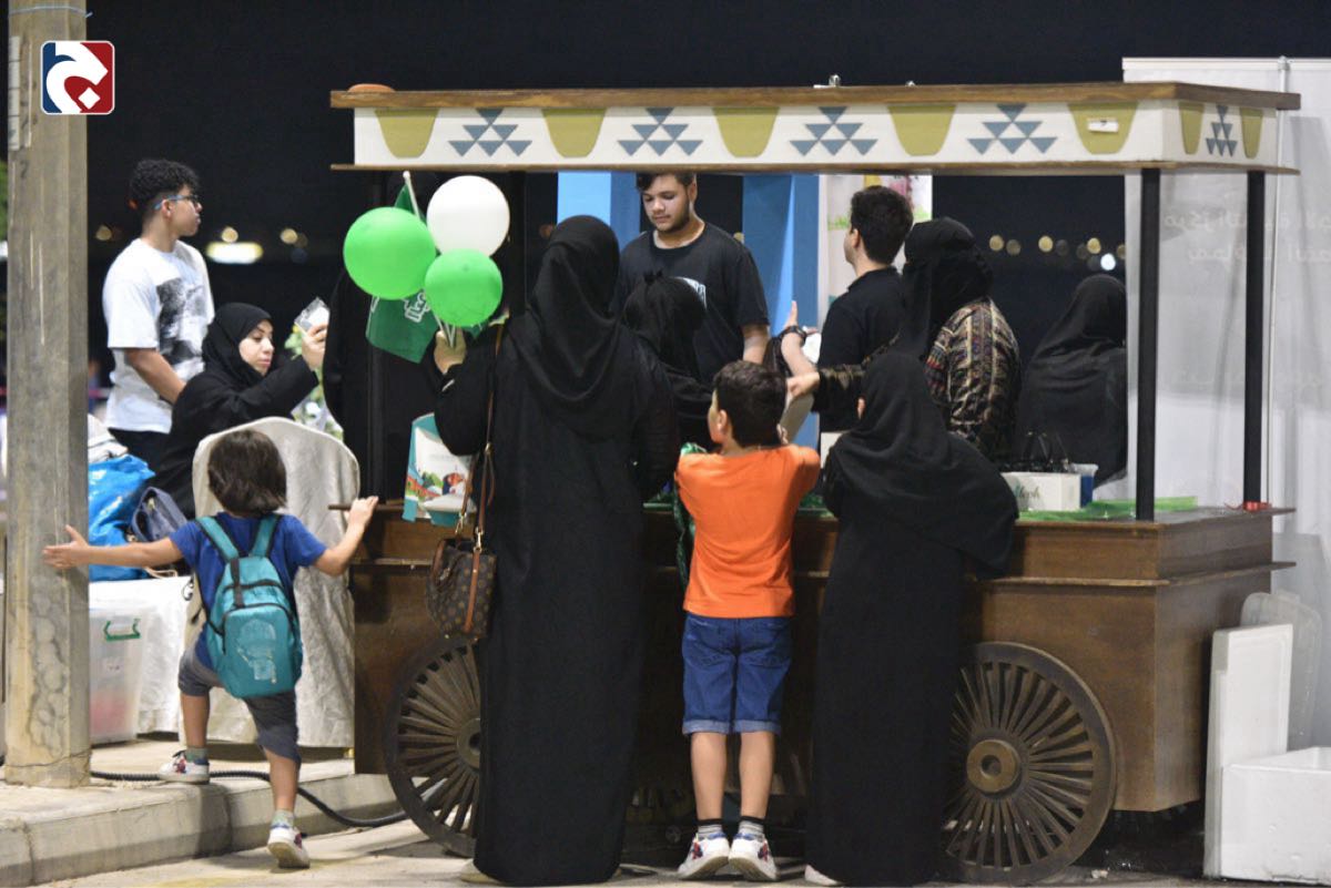 وقام المتطوعون بتلوين وجوه الأطفال بألوان العلم السعودي، الأخضر والأبيض، وقد أبدعوا في إنشاء أشكال ورسوم تعبّر عن هذه المناسبة الوطنية العظيمة.