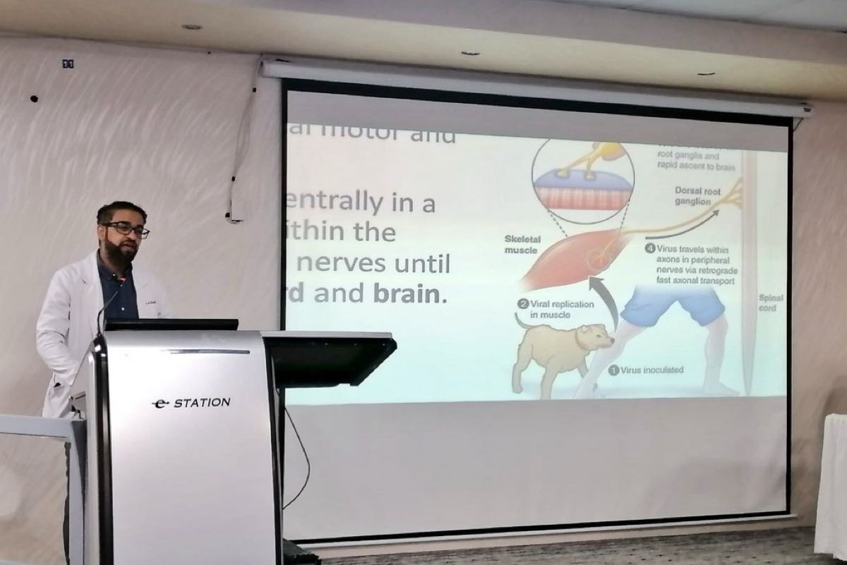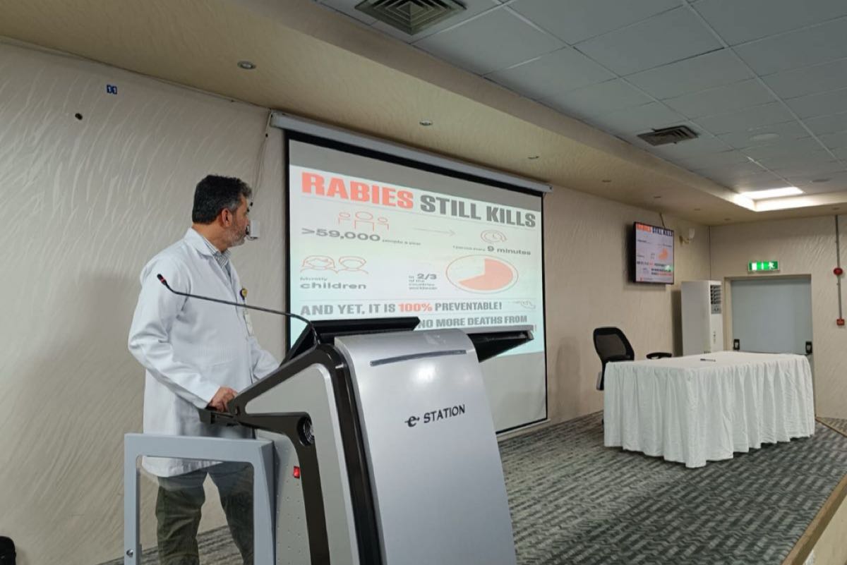 وتناول المحاضران الدكتور جاسم المقرن، والدكتور مؤيد الشخل، داء الكلب، والذي يمكن الوقاية منه باللقاحات، وأوضحا أنه يتسبب في وفاة عشرات الآلاف كل عام، خاصة في آسيا وأفريقيا، 40% منهم من الأطفال دون سن 15 عامًا.