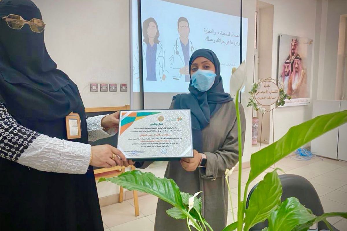 اختتمت المحاضرة بتقديم شهادة شكر وتقدير للاخصائية ”العوامي“ من قبل مساعدة مدير المكتب ”سمية عبدالوهاب“، وذلك تقديرًا لجهودها المبذولة في تقديم المحاضرة وأهم النصائح التي قدمتها للحضور.