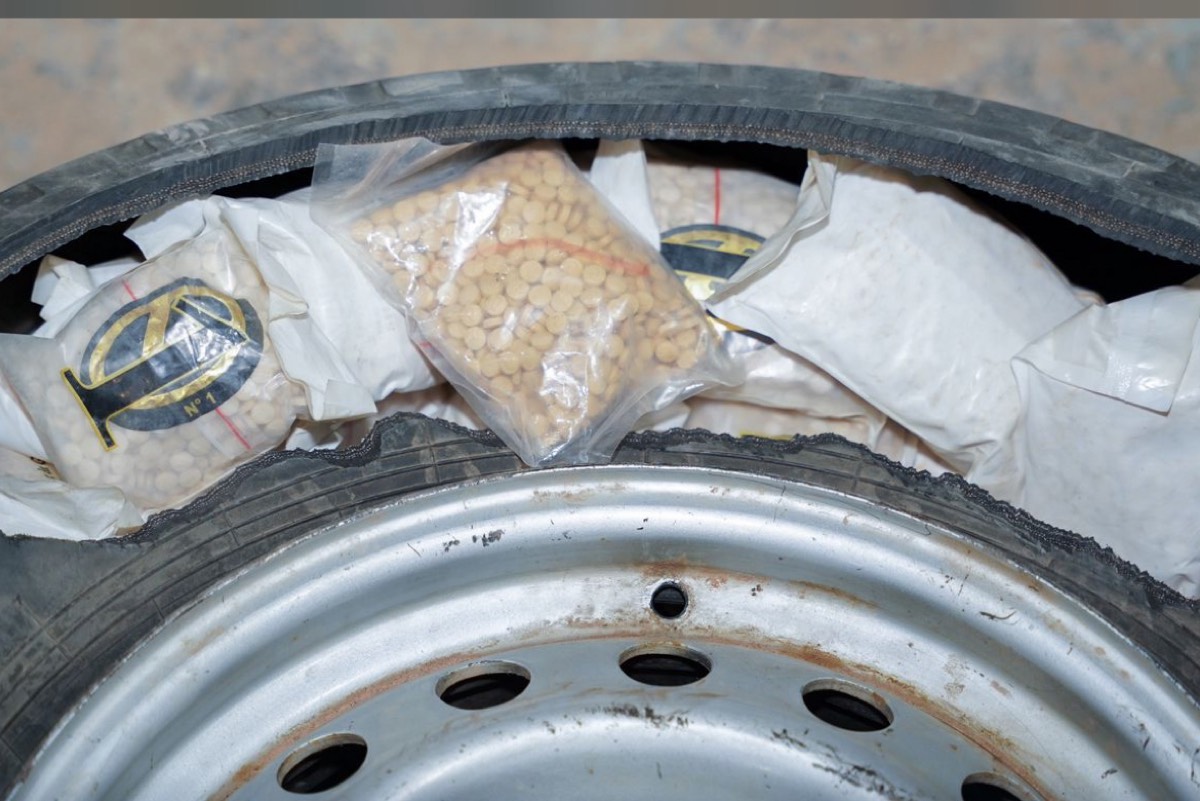 وأوضحت الهيئة أنه عند إجراء عملية الكشف والمعاينة لإحدى المركبات القادمة عبر منفذ الحديثة، عُثر على تلك الكمية من الحبوب مخبأة بداخل الإطار الاحتياطي وخزان وقود المركبة.
