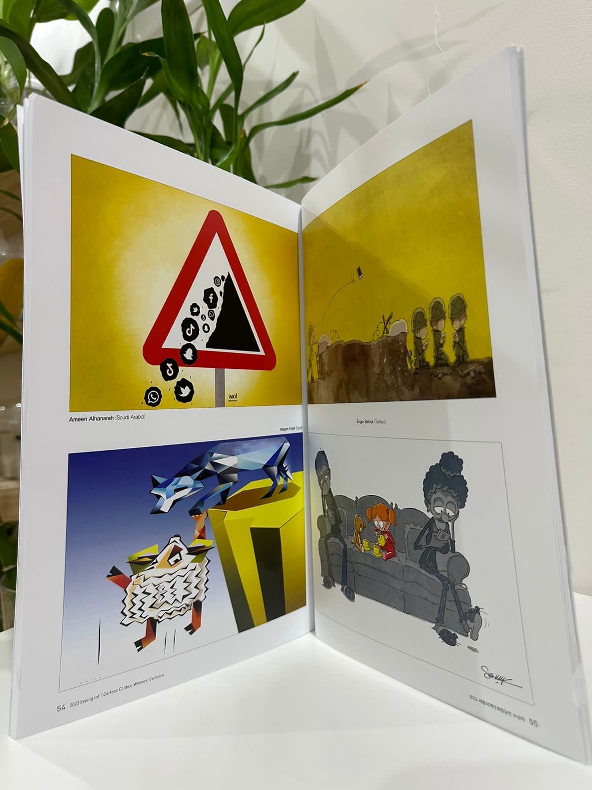 فاز فنان الكاريكاتير السعودي أمين الحباره، بجائزة مسابقة ”سيكاكو“ الدولية الثانية والثلاثين في كوريا الجنوبية 2023 للمرة الثانية، وتصور اللوحة الفائزة، التحذير من منزلق إدمان وسائل التواصل الاجتماعي.
