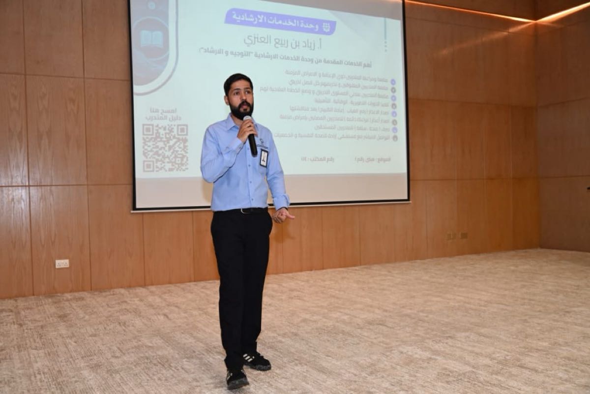 وعن برنامج تهيئة واستقبال المتدربين المستجدين، قال مدير وحدة الخدمات الإرشادية زياد العنزي: إنه اشتمل على عدة فقرات منها التعريف بنظام التدريب في الكلية والخطط التدريبية في نظام الثلاث فصول، وكذلك استعراض الخدمات المقدمة للمتدربين، والتعريف بالأنشطة، والخدمات الإلكترونية المقدمة من خلال مركز التدرب الإلكتروني، وصندوق المتدربين، والتعريف بمبادرة رافد التي تهدف إلى تيسير الانضمام المبكر للمتدربين بسوق العمل قبل التخرج بهدف تنمية مهاراتهم الوظيفية.