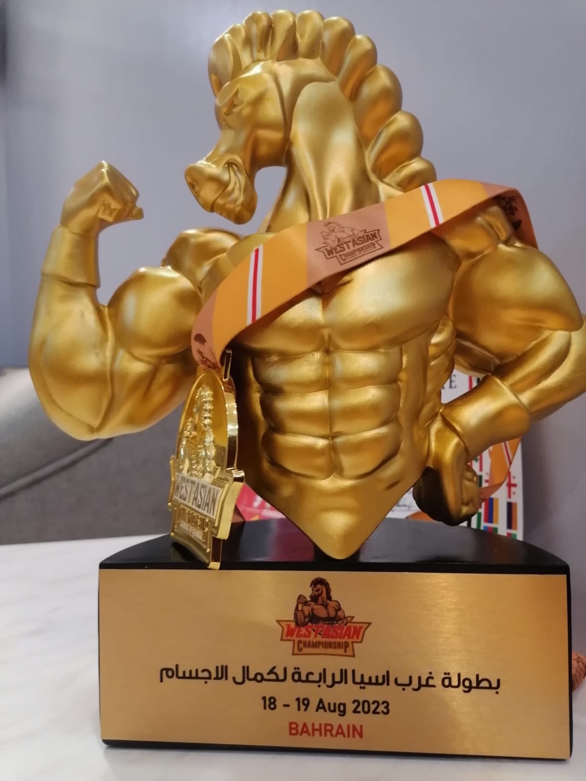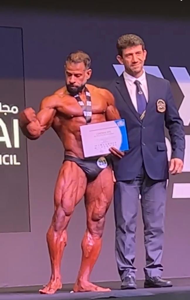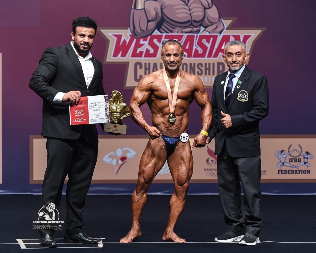 السيد ماجد عمران أبو الرحي الذي حقق بطولة غرب آسيا الرابعة لكمال الأجسام الماستر فوق عمر 55 سنة بحصوله على المركز الأول والميدالية الذهبية.