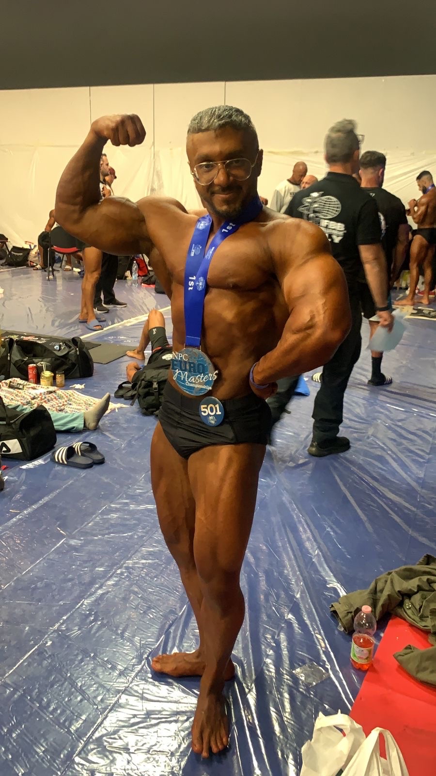 فاضل بدر محسن آل فرحان الذي حقق المركز الأول في بطولة إن بي سي يورو ماسترز في إيطاليا ميلان لكمال الأجسام لفئة الكلاسك فزيك.