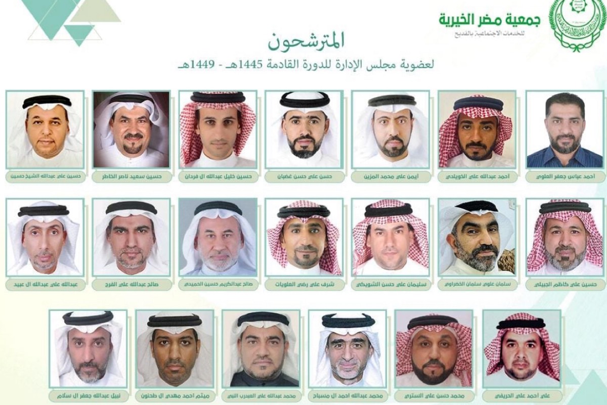 عقدت جمعية مضر الخيرية بالقديح،، اجتماعا تعريفيا وتنسيقيا مع مرشحي الجمعية للدورة القادمة 1445-1449، برئاسة رئيس مجلس الإدارة مهدي الجارودي، ورئيس لجنة الانتخابات عدنان السادة، بمبنى الطرازيات.