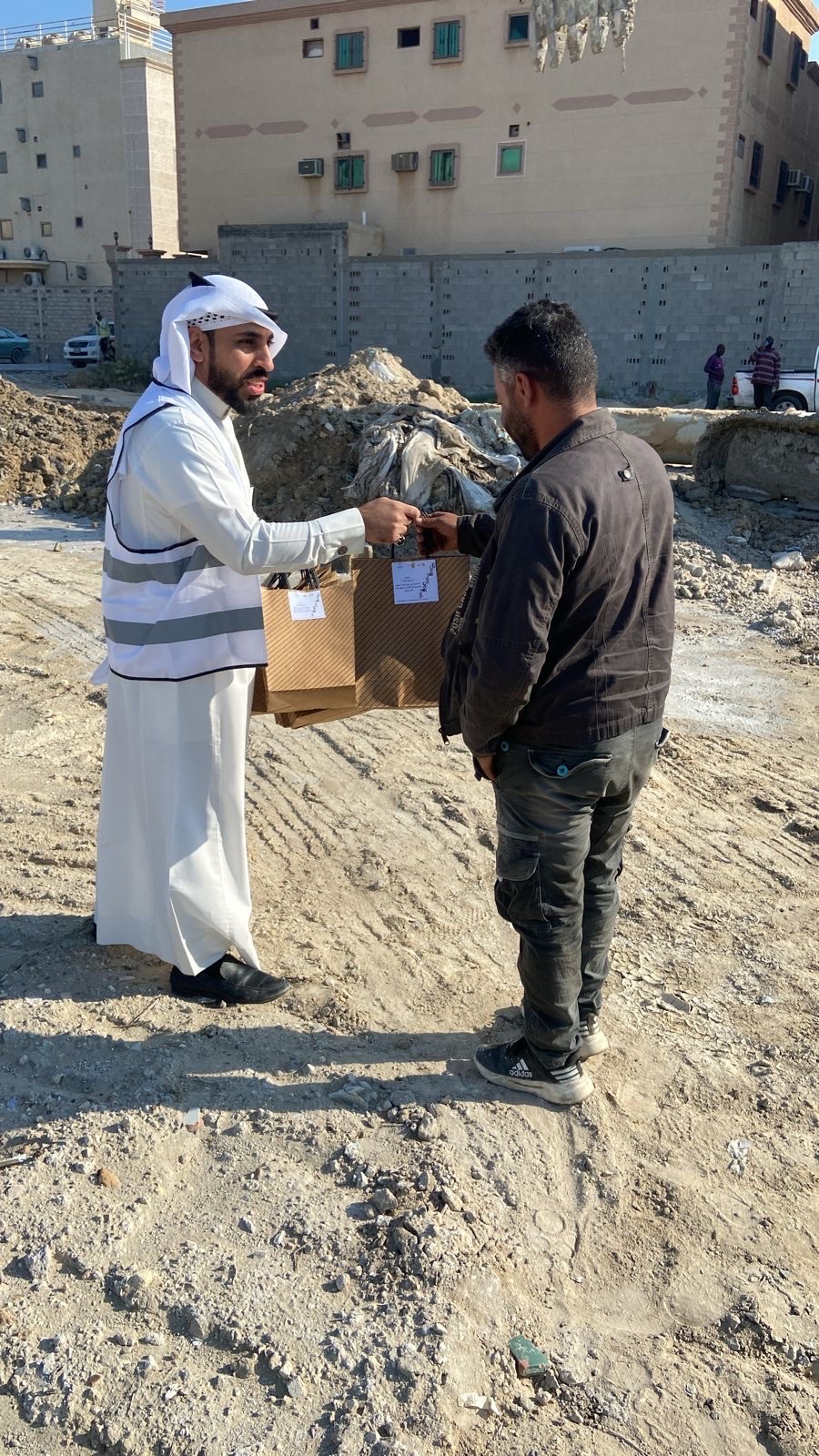 وقام مكتب الضمان الاجتماعي بتوفير عدد من الحقائب الشتوية استهدف فيها أكثر من 100 من العمالة الوافدة العاملة في المشروعات الخدمية المختلفة في عدد من الأحياء القريبة من مقر المكتب.
