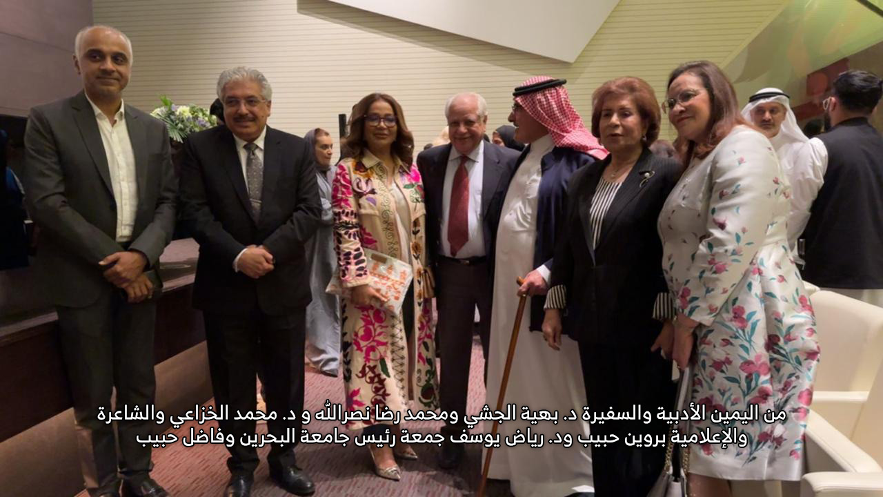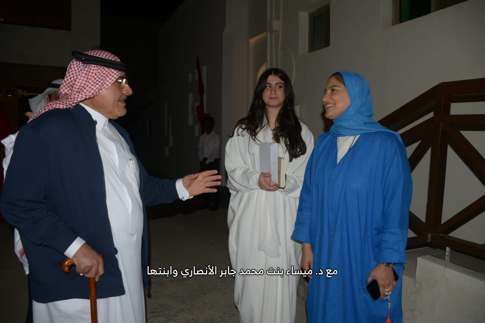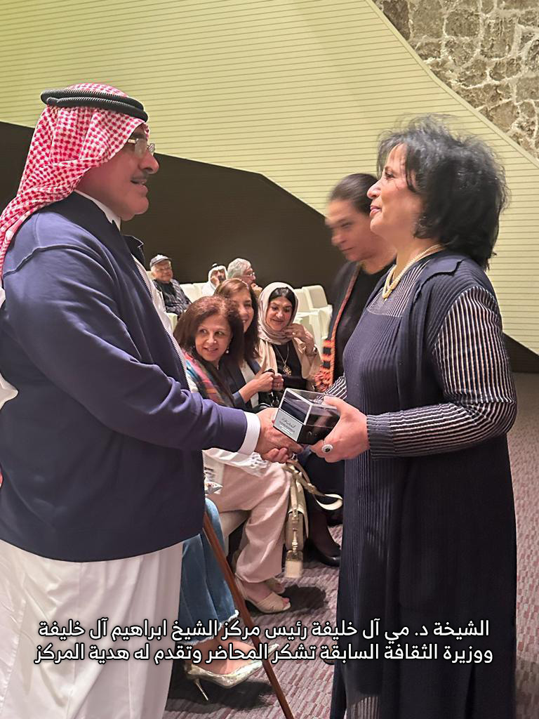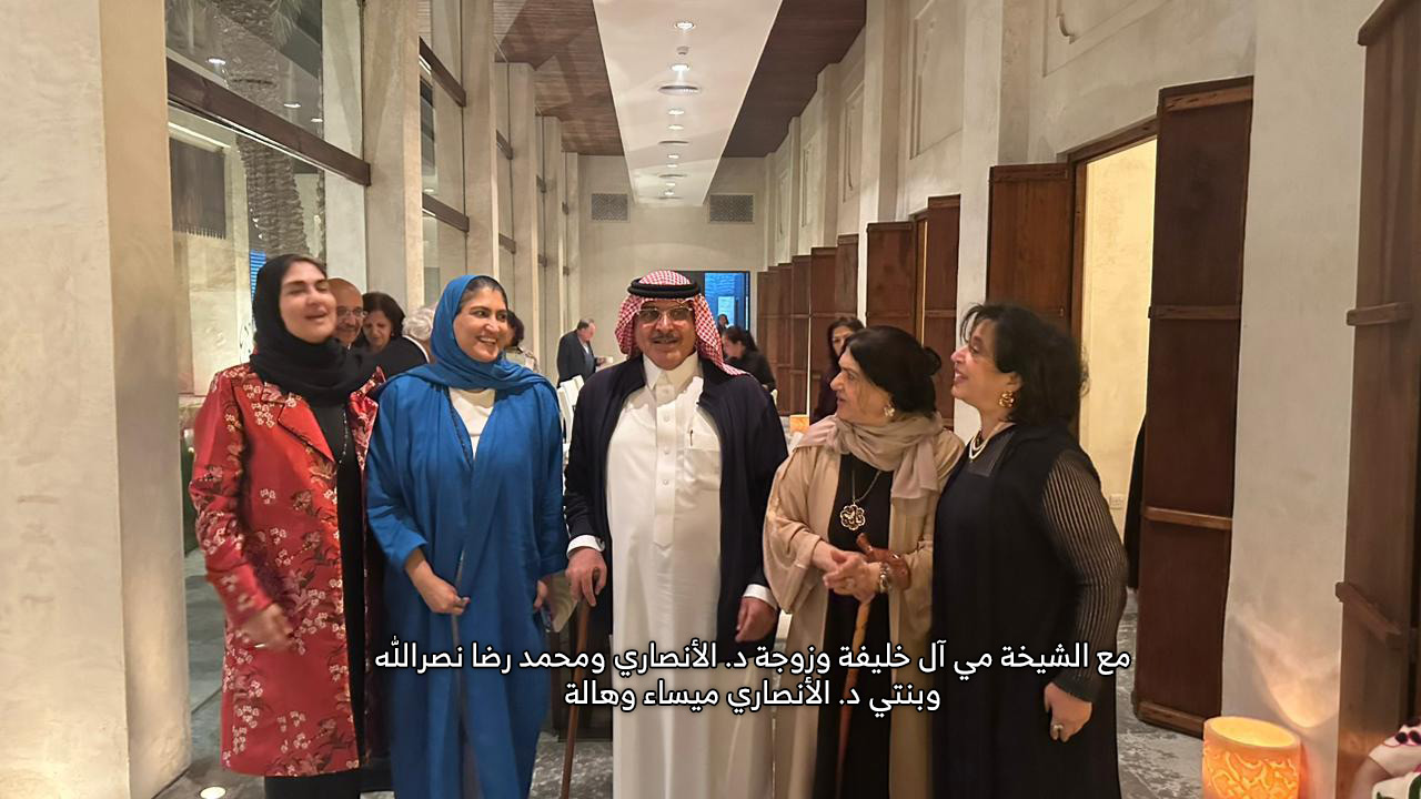 وحضر المحاضرة عدد كبير من السفراء والدبلوماسيين والأكاديميين والأدباء والإعلاميين، وقدمت الشيخة د. مي آل خليفة في نهاية المحاضرة هدية تذكارية للإعلامي محمد رضا نصرالله. بحضور زوجة د الأنصاري وبناته.