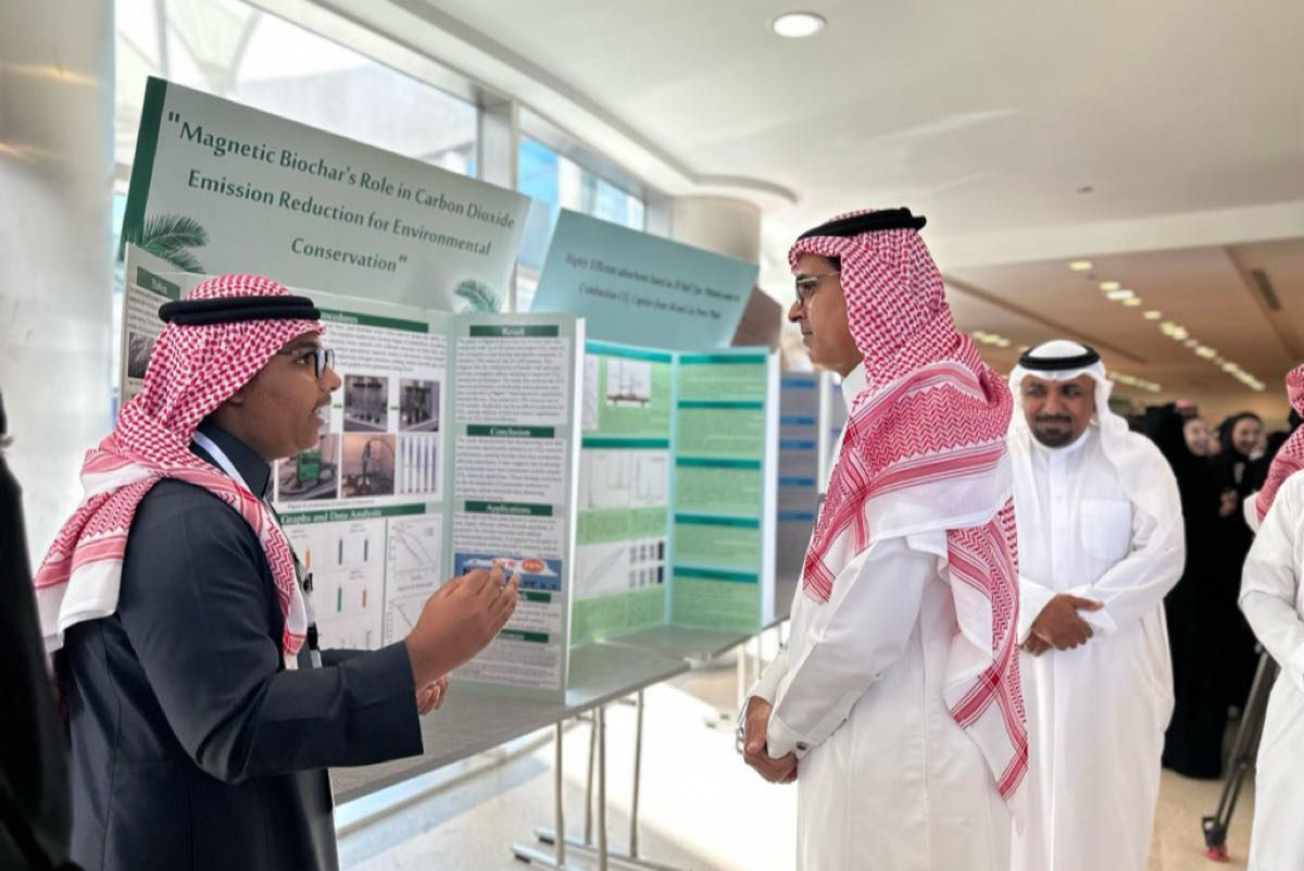 وبحظي المعرض بمشاركة 110 طالباً وطالبة ضمن مرحلة تحكيم مباشرة أشرفت عليها لجان متخصصة من قبل نخبة من الأكاديميين والمختصين بما يتوافق مع المجالات العلمية والتقنية المتخصصة.