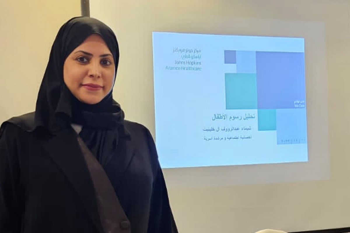 نظم قسم التدريب والتطوير بمركز الحماية الأسرية وحماية الطفل بالدمام، ورشة عمل تدريبية، بالشراكة المجتمعية مع مركز جونز هوبكنز أرامكو الطبي، قدمتها الأخصائية الاجتماعية والمرشدة الأسرية شيماء آل خليتيت، تحت عنوان «رسوم الأطفال ودلالات الاعتداء الجنسي».