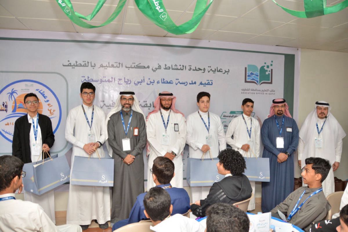 رعى مكتب التعليم بمحافظة القطيف، المسابقة الثقافية ”إثراء وعطاء“ في نسختها السابعة، التي أقامتها مدرسة عطاء بن أبي رباح المتوسطة بالقطيف، أمس، بمشاركة 10 مدارس متوسطة، وبحضور مساعد مدير التعليم للشؤون التعليمية عبدالسلام الشهري، ورئيس وحدة النشاط محمد العمري.