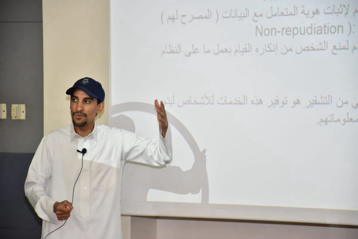 وعدّد المهندس الدحيلان أنواع المخاطر والتهديدات ونقاط الضعف وأنواع الهجمات في بيئة المعلومات ووسائل الحماية اللازمة لكل منها وأنظمة التشفير وأنوعها، مشيرًا إلى أن أضعف حلقة في الأمن المعلوماتي هي عقل الإنسان، لذا إذا تم اختراقه ”الهندسة الاجتماعية“ سيتم اختراق النظام المعلوماتي الأمني بالكامل، مبينًا كيفية التعامل مع إساءة الاستخدام في بعض مواقع الشبكات الاجتماعية على شبكة الإنترنت.