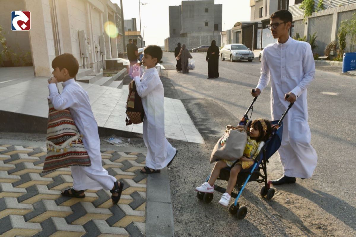 كما أظهرت الصور الأهالي وهم يشاركون أطفالهم فرحتهم، ويوزعون عليهم الحلوى والهدايا.