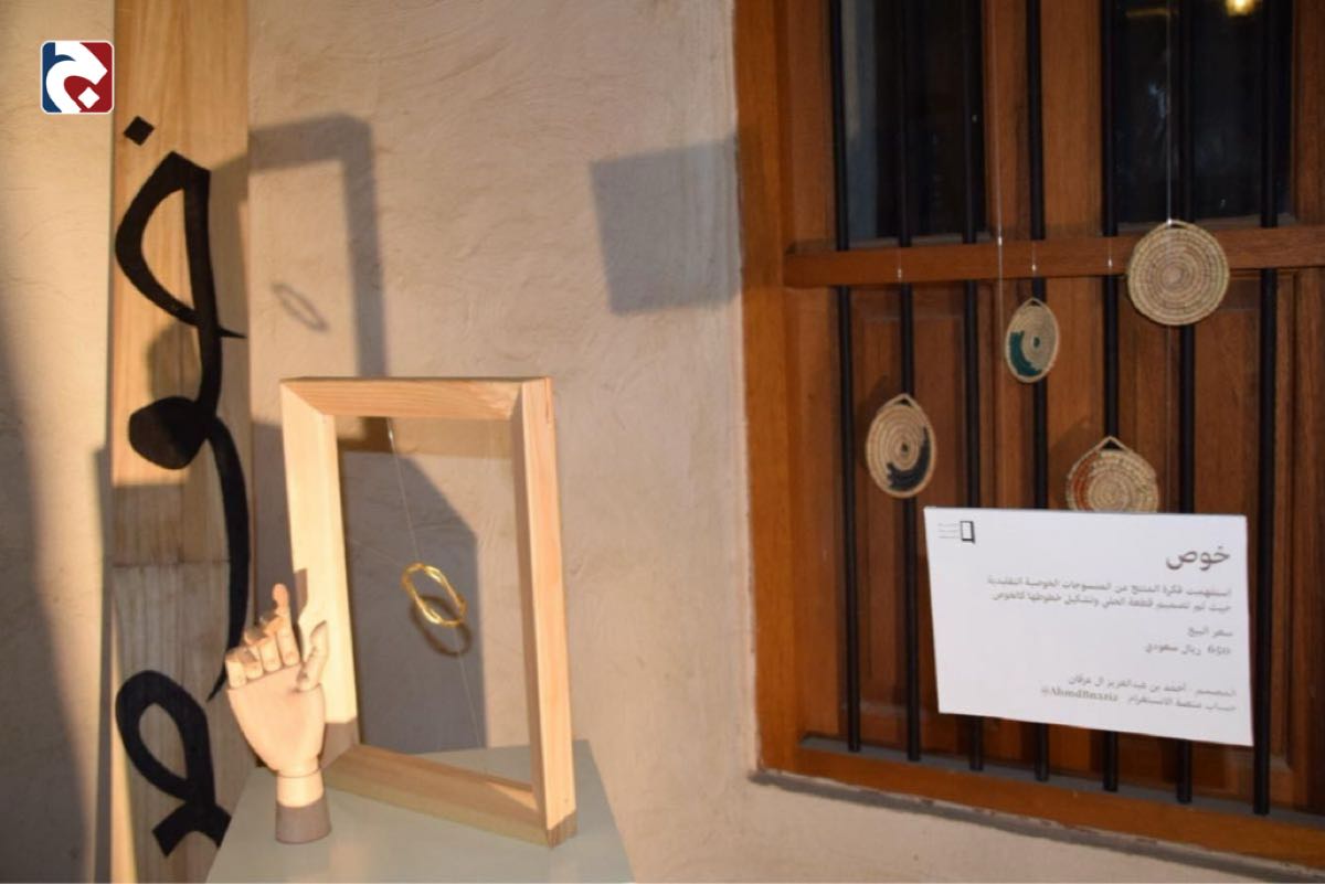 من جهته، شارك أحمد عبد العزيز، والذي تخرج في قسم العمارة بجامعة الإمام عبد الرحمن بن فيصل، بقطعة فنية استلهمها من منتجات الخوص التقليدية، وتشكيل بعض الحُلي من خطوط الخوص.