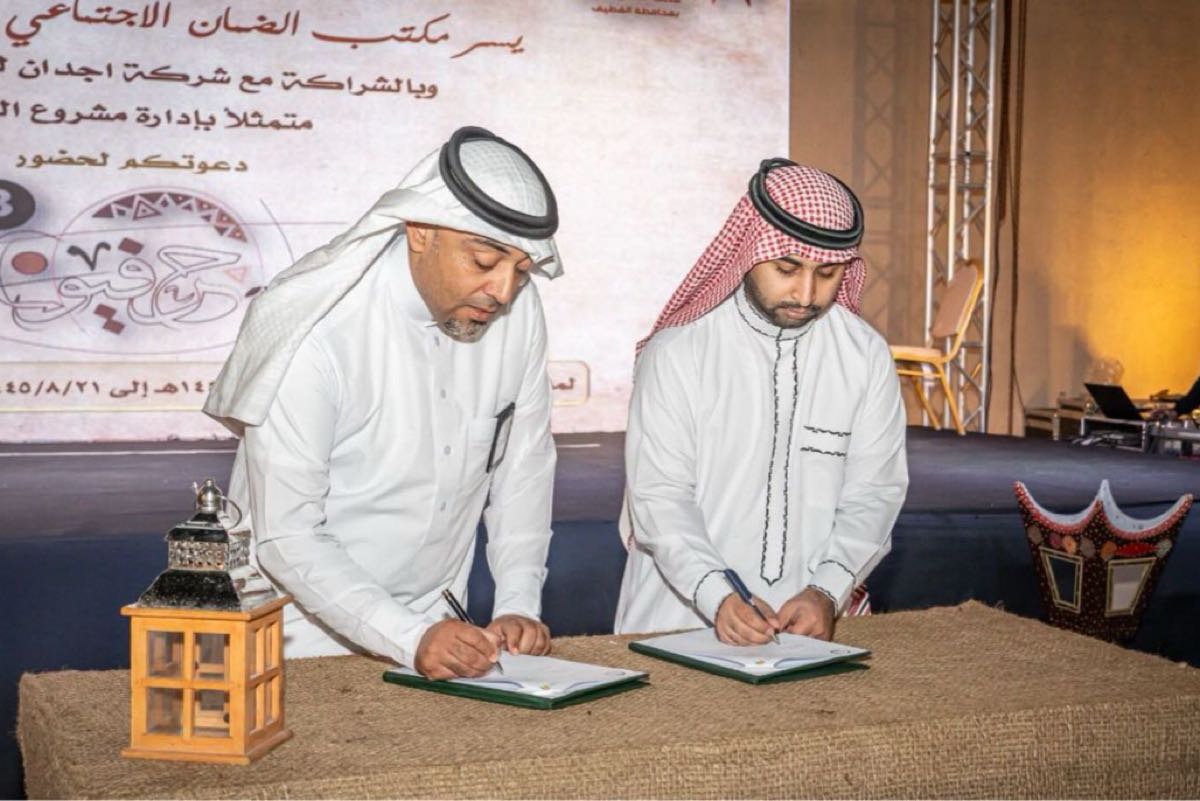 على هامش فعالية ”حرفيون“ بنسختها الثالثة، التي تقام بتنظيم مشترك بين مكتب الضمان الاجتماعي بمحافظة القطيف وشركة اجدان للتطوير العقاري، تم توقيع مذكرة تفاهم بين مكتب الضمان الاجتماعي وشبابية الشرقية الإعلامي.