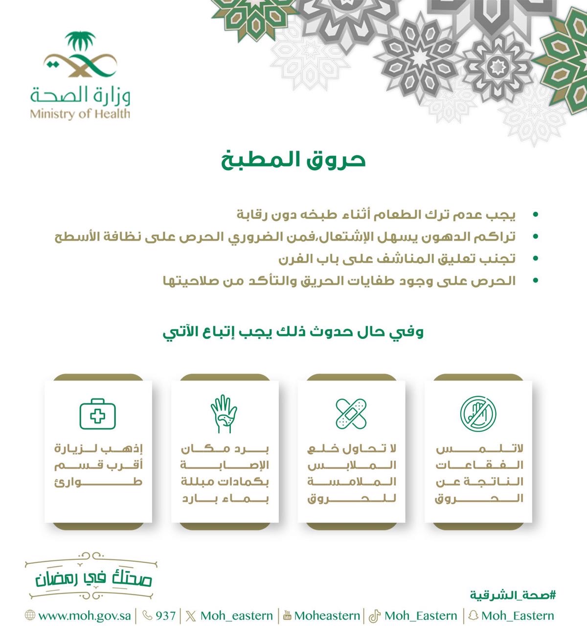 حددت وزارة الصحة الطريقة السليمة للتعامل مع حرائق وحروق المطبخ، حيث قدّمت عدة نصائح وإرشادات عند الإصابة بهذه الحوادث.