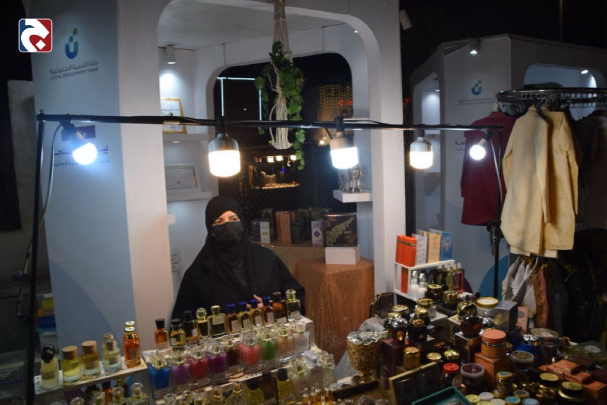 وقالت أفراح القلاف، صاحبة متجر للعطور والبخور: ”ندعم من قبل بنك التنمية ونعمل على تقديم عطور عالية التركيز وخلاطات من العطور الفرنسية والعربية والبخور“.