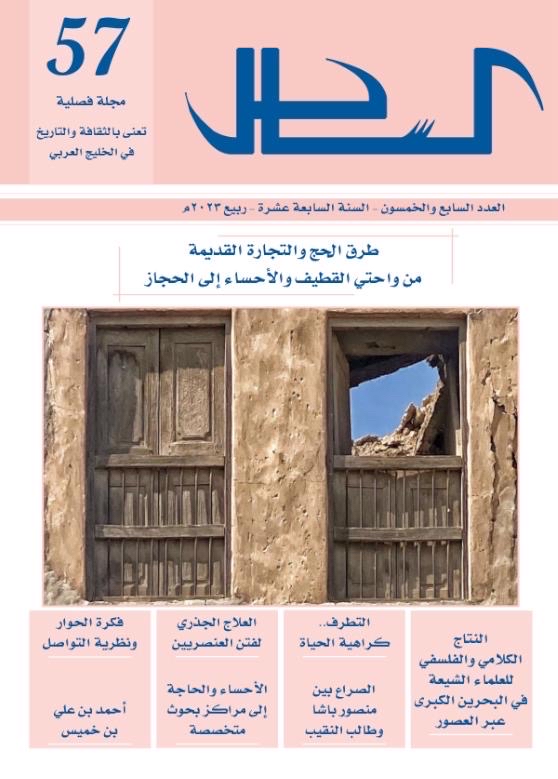 صدر حديثًا العدد السابع والخمسون من مجلّة الساحل «السنة السابعة عشرة - ربيع 2023 م»، واحتوى على عدد من المقالات التي تناولت تاريخ المنطقة الشرقية وتراثها خصوصًا، وشؤون الخليج العربي وتراثه عمومًا. وجاءت موادّ العدد كما يلي: