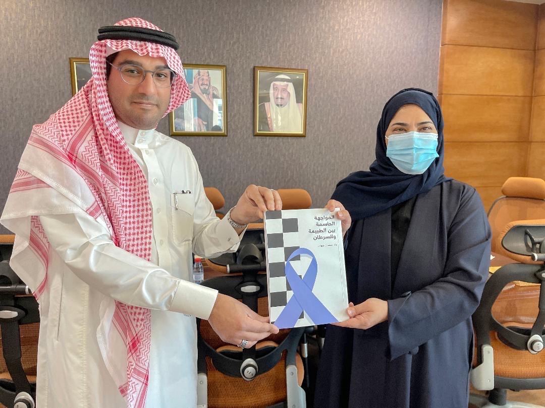أود أن أشكر جزيل الشكر الدكتورة. نهاد بنت عبدالله العمير - نائبة رئيس جامعة الإمام عبد الرحمن بن فيصل للتطوير والشراكة المجتمعية، وعميد عمادة البحث العلمي. على الاستقبال وإهدائها كتابي الأول ”المواجهة الحاسمة بين الطبيعة والسرطان“. فالبحث العلمي أصبح مادة ملحة ومهمة في هذا العالم المتسارع والمتغير. فكما ذكرت بالمقال، العالم الألماني تغير اعتقاده 180 درجة من شخص غير مؤمن بالنظام الإلهي إلى شخص أشهر إسلامه بواسطة البحوث والوقت والتأمل الدقيق.