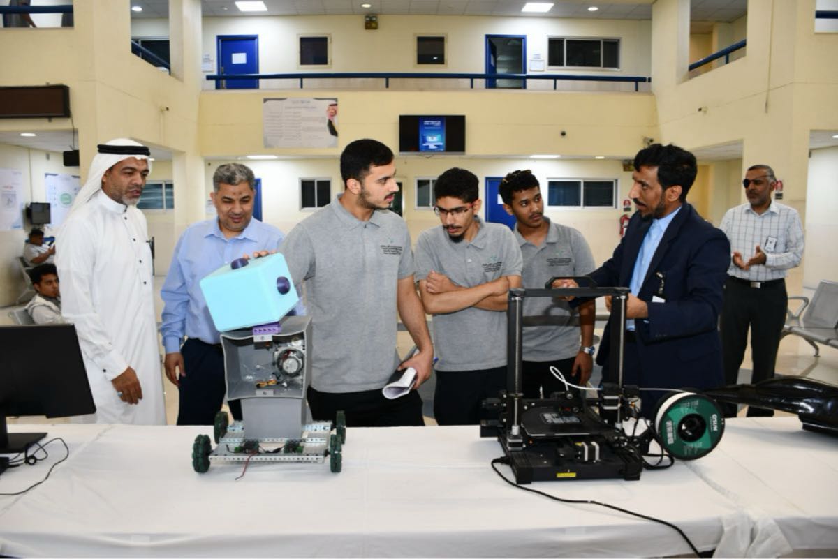 ونظم مركز البحث والابتكار التقني بالكلية معرضًا يضم بعض مبتكرات المتدربين مثل الروبوت المتحرك والطائرة المتحركة، حيث قدم المدرب إبراهيم المبارك شرحًا وافيًا للمتدربين عن كيفية عمل وبرمجة الروبوتات.