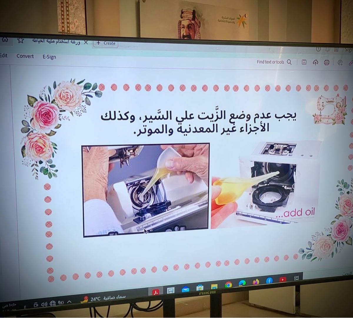 وتناولت المدربة ”آل هليل“ تعريف المشاركات بأساسيات الخياطة، وتدريبهن على كيفية استخدام الخياطة بطريقة صحيحة، وعمل تطريز وبرم للأقمشة بمختلف أنواعها، وتركيب السحابات، إضافة لشرح عملي لكيفية استخدام بعض الدواسات للماكينة، وكيفية تنظيفها وإصلاحها.