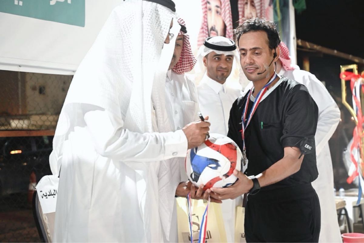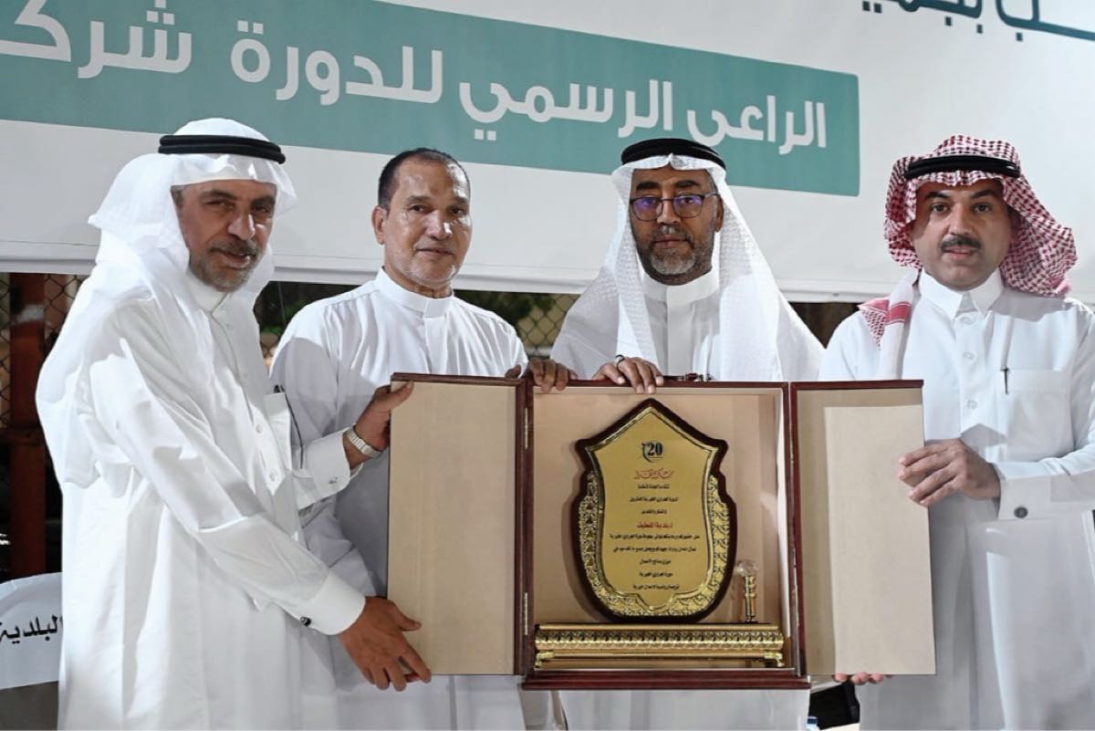 سلم كأس البطولة بالإنابة المهندس علي المطرود وكيل رئيس البلدية للخدمات والمهندس عبد المحسن الغريافي رئيس بلدية وسط القطيف.